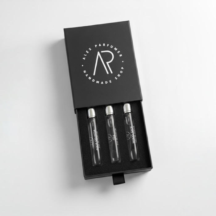 Набір із трьох універсальних ароматів для тих, хто цінує свіжість і простоту. Aqua Celestia, 724 і Wood Sage — мінімум слів, максимум комфорту. Ідеальний вибір на кожен день.