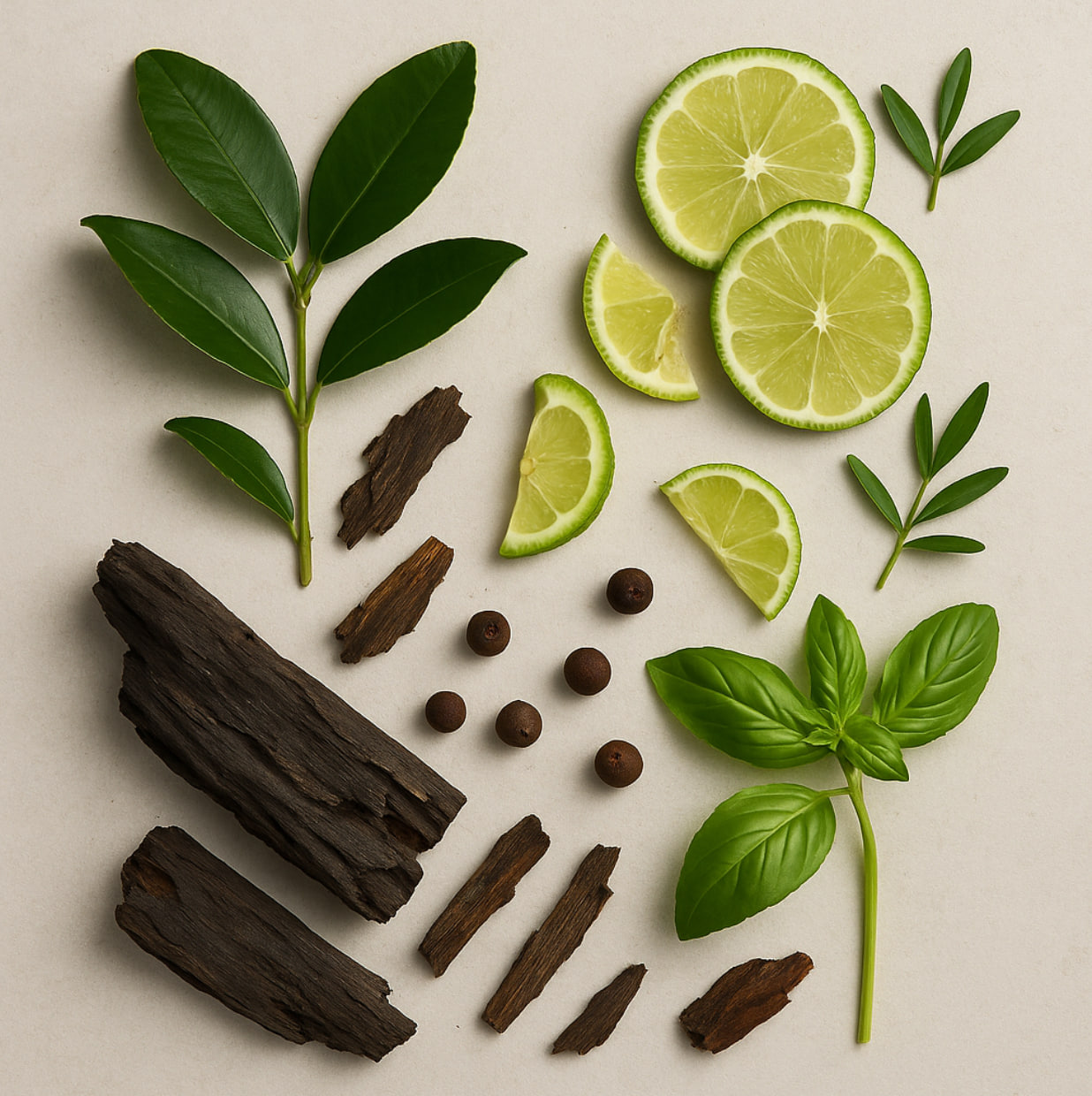 Верхні ноти ├── Тайський базилік ├── Грейпфрут └── Перець Тімут Серце ├── Гаїтянський ветивер ├── Герань └── Мінеральний акорд База ├── Akigalawood® ├── Кедр └── Мускус