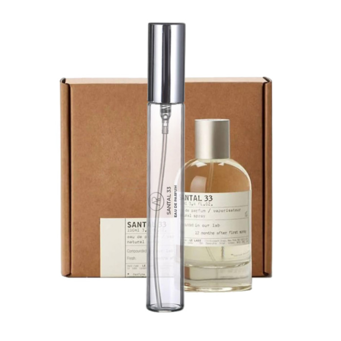 Santal 33 is a woody-leathery unisex fragrance launched in 2011. Cardamom and violet leaf open the composition, sandalwood and cedar form the heart, while leather, amber and white musk shape a distinctive smoky trail.